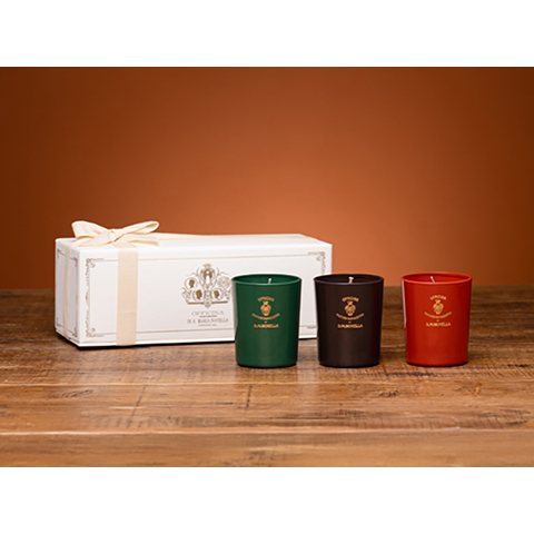 セットに収められるのは、フィレンツェの優雅な文化を香りで描き出す人気の3種、「ポプリ」、「トバッコ トスカーノ」、「ザクロ」の香りです。