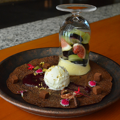 ・デザート/秋の果実クレープパフェ(シャインマスカット ピオーネ ザクロ)